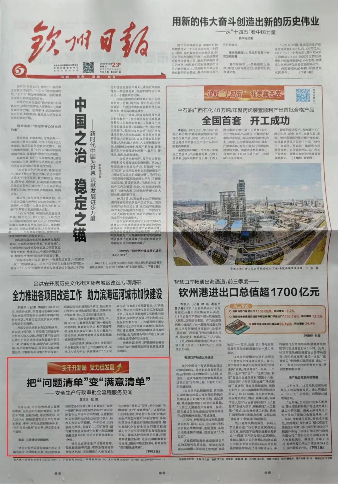 行政许可事项办结后,市应急管理局通过微信群、电话、现场指导等方式主动对接企业,帮助企业将行政许可事项信息规范录入安全生产风险监测预警系统,着力畅通审批与监管信息双向推送渠道,从而降低了入企频次。今年初,钦州两山创新材料科技发展有限公司在审批阶段已完成成品仓库危险化学品堆放的整改,该局在后续检查中便不再针对该问题进行专门核查,让企业能将更多精力投入到日常安全管理中,实现“审批提效、监管减负、企业受益”。