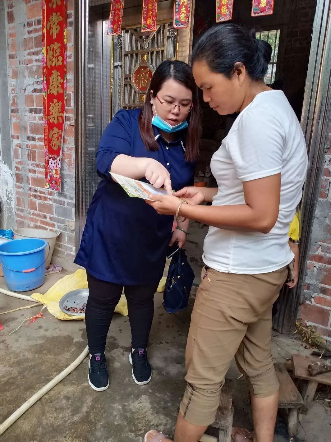 ▲张焕瑶(左)到贫困户家中开展帮扶工作