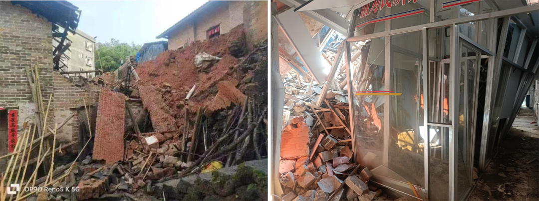 5月10日上午,龙门镇龙城社区灾害信息员、副支书胡上燃在排查安全隐患过程中发现社区有两户居民所住的房子有倒塌风险,马上报告社区支书李世伟。李世伟与村干部迅速到现场核查,发现受近期连续降雨影响,房屋墙面已经出现凸起变形,判断可能出现倒塌风险,遂立即将情况报告龙门镇人民政府。龙门镇政府立即安排镇村干部到达现场,动员两户12人立即撤离,其中一户安置在社区宿舍,一户安置在其亲戚家,并在危险区域周边设立安全警戒线。12日15时至16时,两间房间出现倒塌,一户50平米左右全部倒塌,另一户220平米倒塌了约三分之二。