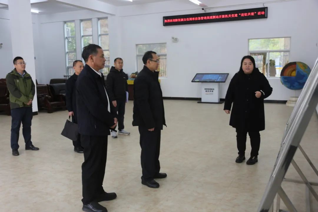 紧接着来到观测站二楼会议室,在听取市应急管理局党委党建工作汇报后,陈仅对市应急管理局将党建与业务深度融合,积极探索“党建+应急管理”模式,切实推动新时代应急管理、安全生产、防灾减灾救灾工作取得的新成效给予充分肯定。他强调,要深入学习贯彻习近平总书记关于应急管理、安全生产和防灾减灾救灾重要论述和重要指示批示精神,不断增强应急管理工作影响力,凝聚应急管理事业改革发展正能量。要强化党建引领,切实发挥党委统揽全局核心作用、党支部战斗堡垒作用和党员先锋模范作用,做好年轻干部入党培养教育工作,为党组织注入新鲜血液,努力打造一支“召之即来、来之能战、战之能胜”的应急管理队伍。要引导干部职工主动担当作为,坚决扛起防范化解重大安全风险的政治责任,以“时时放心不下”的责任感,全力以赴做好应急管理各项工作,为钦州加快建设高质量发展、高水平开放、高品质生活的滨海运河城市中提供安全保障。