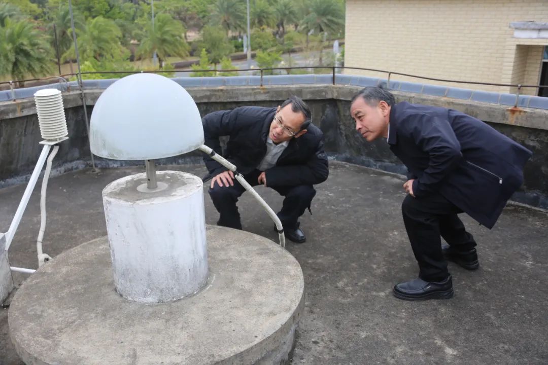 ▲陈仅在钦州市地震烈度速报与海啸预警综合观测站实地调研