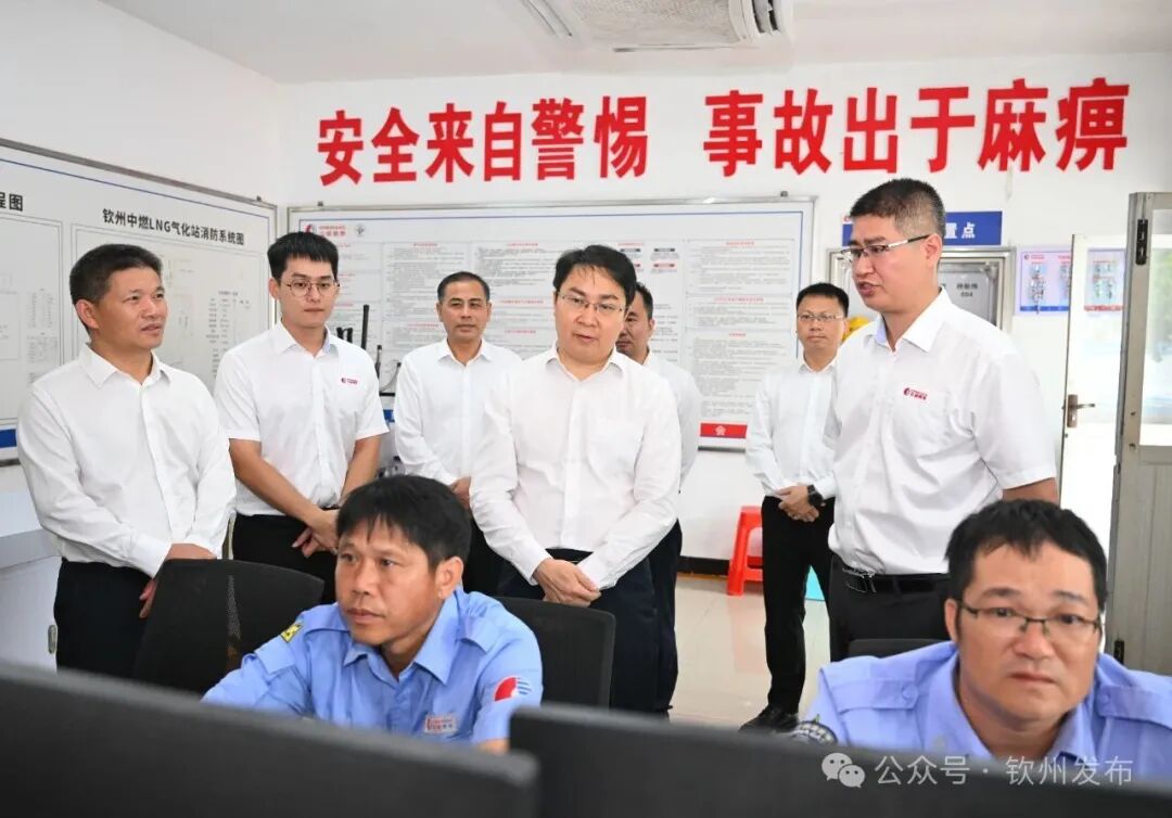 在钦州中燃LNG气化站,李玉成走进总控室查看设施运行状态和预警机制,了解燃气安全管理、安全生产责任落实、节日值守和服务保障等具体情况,叮嘱企业和相关部门要加强设施监测巡检,对重点区域、重要环节要加大检查力度,及时整改安全隐患,确保燃气管网安全稳定运行;要进一步完善应急处置预案,利用人工智能技术提升燃气运行监管的自动化智能化水平,为城市燃气安全运行保驾护航。