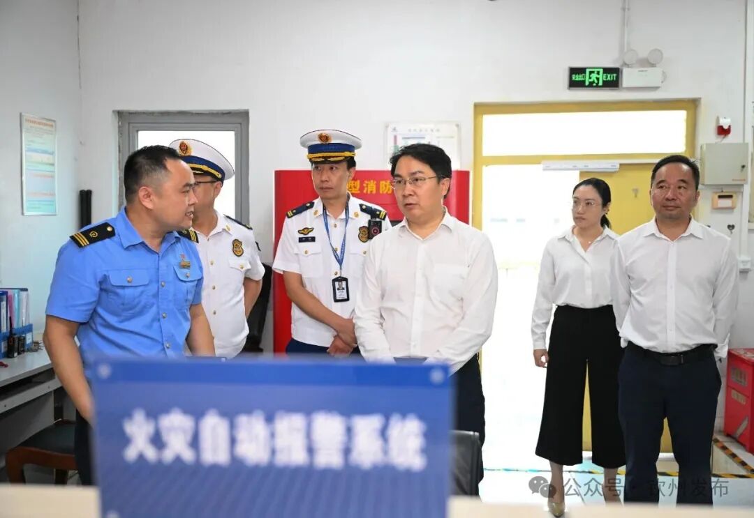 李玉成(中)到钦州东站,检查安全生产(人员密集场所)、消防安全情况。融媒体记者 夏玮蔓 摄