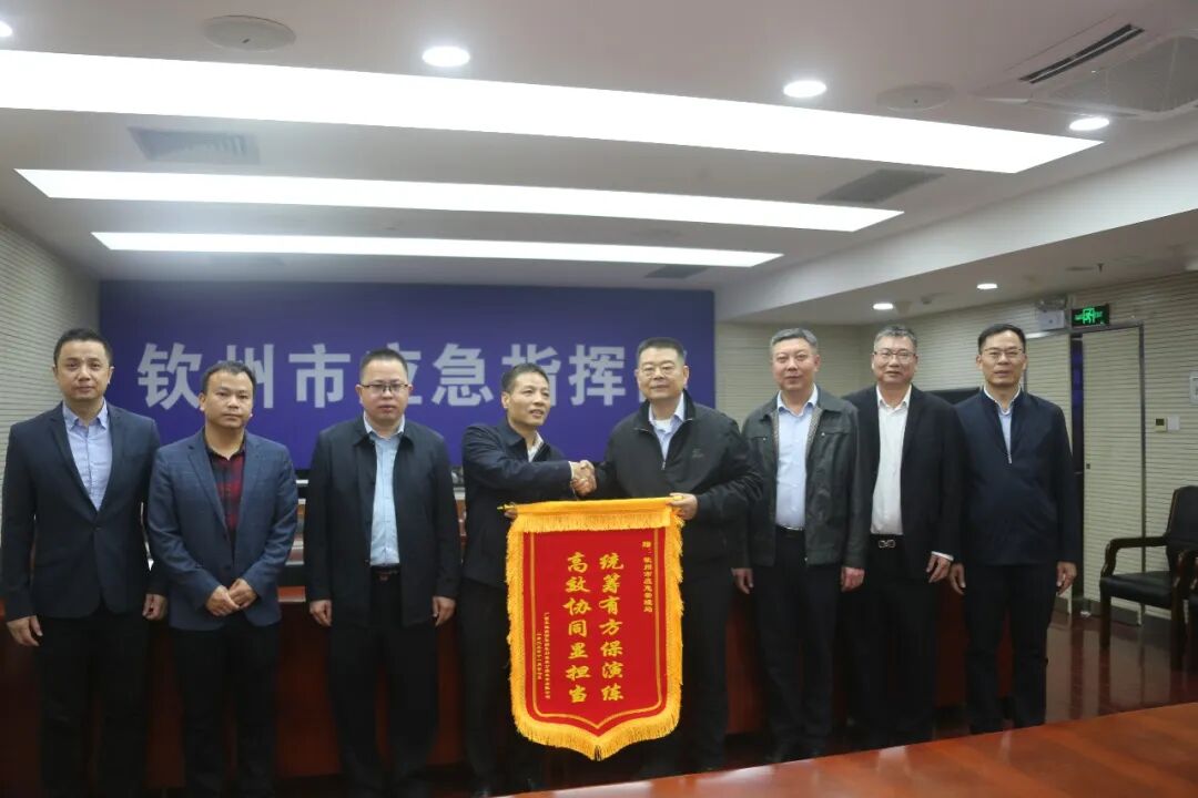 “感谢钦州市应急管理局组织我们企业开展道路交通安全突发事件应急处置联合演练,大幅提升了我们应对重特大道路交通事故突发事件的预防和应对能力。”12月11日,广西交通投资集团钦州高速公路运营有限公司党委书记、董事长、总经理任健翔将一面写有“统筹有方保演练,高效协同显担当”字样的锦旗送到了市应急救援中心副主任马志联手中,诚挚感谢市应急管理局悉心指导企业完善演练方案和脚本,精心组织演练,增强了企业应对交通突发事件的实战能力。