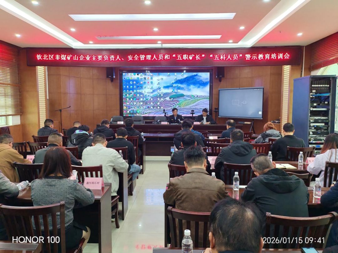 为深刻吸取近期广西区内矿山生产安全事故教训,扎实做好岁末年初矿山安全生产工作,1月15日,钦北区应急管理局在该局召开非煤矿山企业安全生产警示教育培训会议。会议由钦北区应急管理局副局长程儒贵主持,各非煤矿山企业主要负责人、安全管理人员和“五职矿长”“五科人员”共30余人参会。