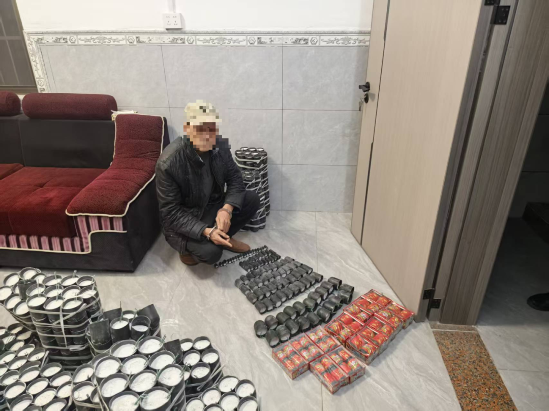 2025年1月26日,钦北区烟花爆竹“打非”联合工作组在新棠镇开展排查时,在住户利某家中一楼一房间内,查获大量非法储存的烟花爆竹,现场依法完成收缴,涉案物品共695封(个)。