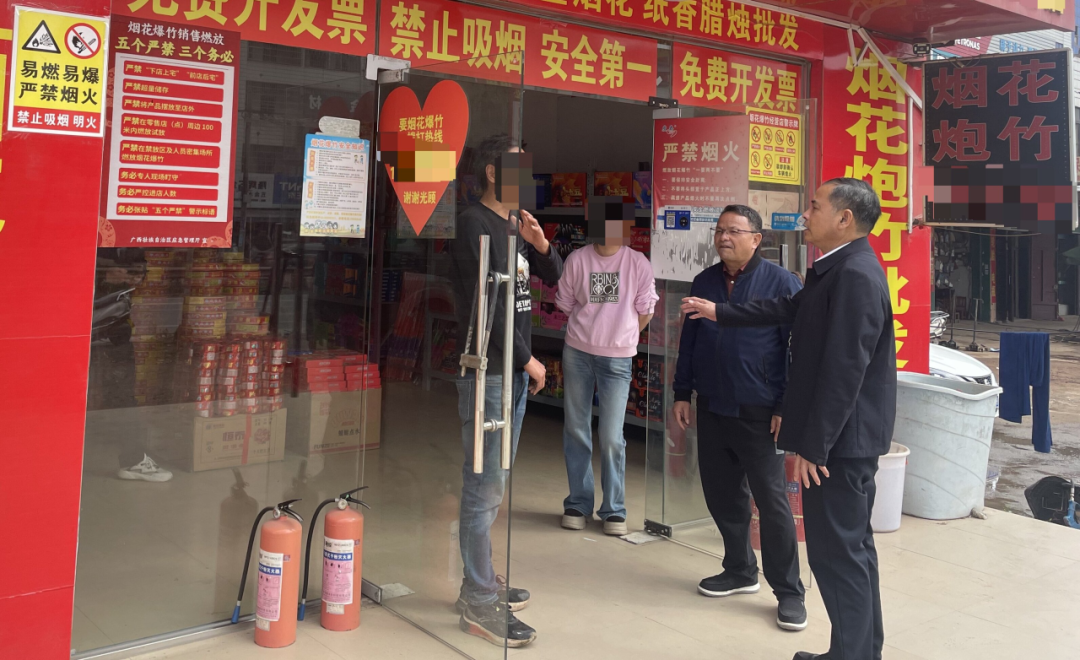 ▲检查组在钦北区小叶烟花爆竹专卖店检查