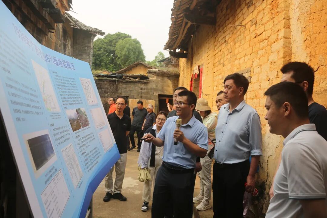 学术研讨会后,与会人员先后前往灵山地震遗址、平陆运河马道枢纽开展现场调研,实地察看地震断层、裂缝、房屋承重柱错位等典型地震遗迹,深入探讨地震遗址保护、重大工程地震安全保障等实际问题,让学术研究与现场实践深度结合。